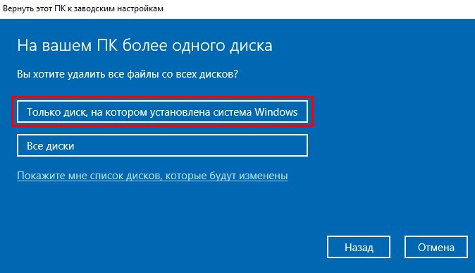 Возврат компьютера в исходное состояние: переустановка Windows 10 из среды самой операционной системы