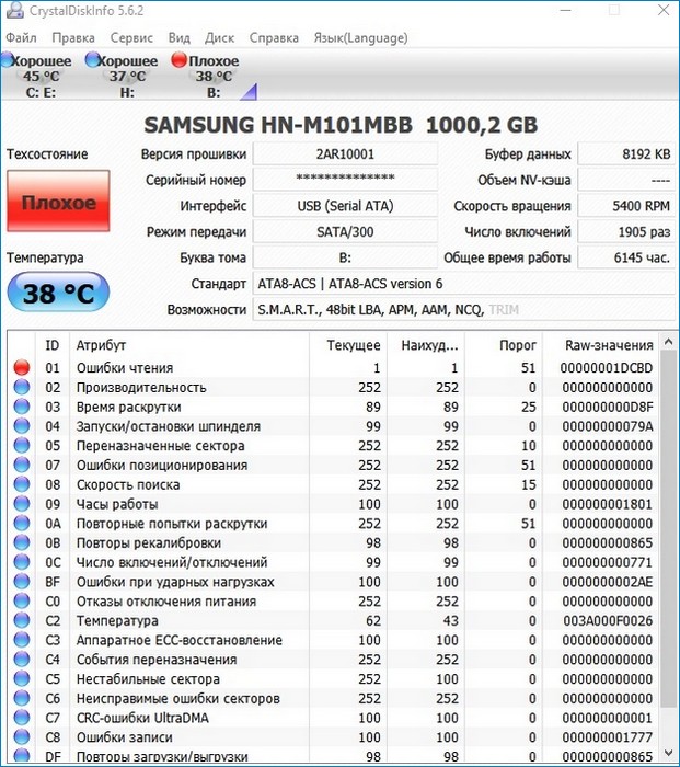 Как выглядит S.M.A.R.T неисправного жёсткого диска