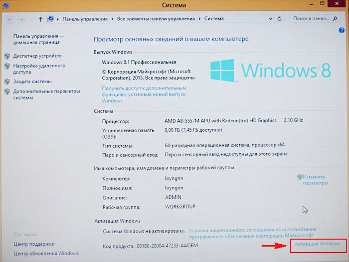 Примечание: Установленная на вашем ноутбуке Windows 8 Single Language 64-bit Russian Region (ОЕМ), это нормальная базовая Windows 8, но только с поддержкой одного русского языка. Нет, печатать вы сможете и на английском, но вот интерфейс управления системы всегда будет русским. Windows 8 Single Language (ОЕМ) можно перенести на другой компьютер и даже обновить до Windows Pro 8. Если вы захотите переустановить операционную систему на вашем ноутбуке, то сделать это примерно можно так - Как переустановить Windows 8 на ноутбуке или так - Как установить на ноутбуке Windows 7 вместо Windows 8.