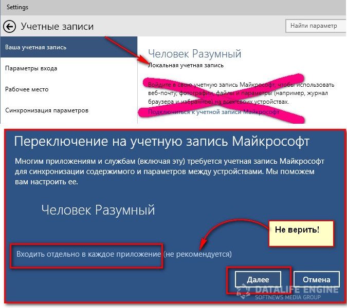 Можно не входить в систему с помощью учётной записи Майкрософт, а сделать локальную вообще без пароля или пин-кода. В магазине и в некоторых Метро-приложениях учётную запись Майкрософт можно использовать отдельно.