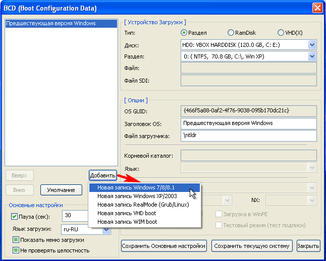 Данным действием мы удаляем из Windows XP информацию о существовании Windows 7.