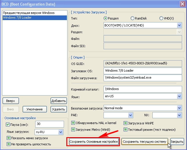 Идём на вкладку BCD, отмечаем пункт "Другой BCD файл" и жмём на кнопку проводника.