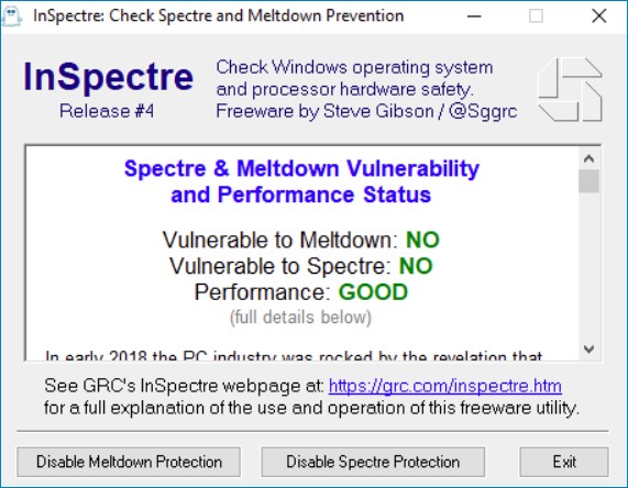 Spectre Meltdown CPU Checker — бесплатная утилита для проверки компьютера на предмет уязвимости Meltdown и Specter