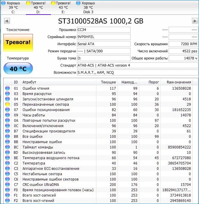 Видоизменены некоторые старые и добавлены новые показатели. В паспорте теперь отображается скорость вращения шпинделя для HDD-дисков, вывод времени стирания диска представлен в формате ЧЧ/ММ вместо ММ (только минуты), показатель размерности объема диска, чтобы больше не возникало путаницы, теперь составляет 1000 вместо 1024.