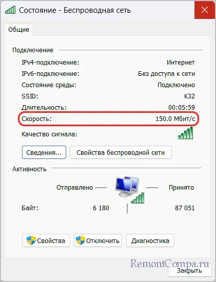 ↑ Как узнать скорость сетевого адаптера в классических настройках Windows