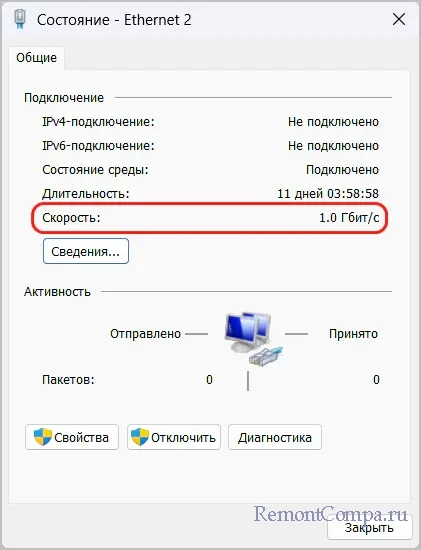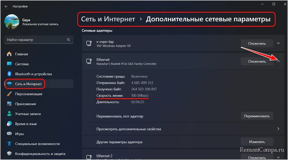↑ Как узнать скорость сетевого адаптера в параметрах Windows 11