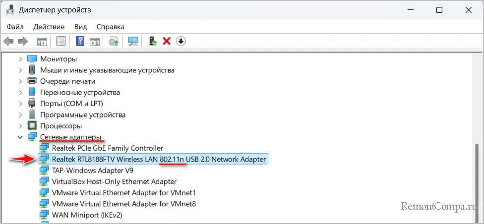 В любой версии Windows узнать поддерживаемый беспроводным адаптером стандарт Wi-Fi можно узнать в системном диспетчере устройств (запустить можно по отсылке в меню по клавишам Win+X). Раскрываем ветку «Сетевые адаптеры» и смотрим название адаптера, в котором может быть указание на поддерживаемый стандарт Wi-Fi.