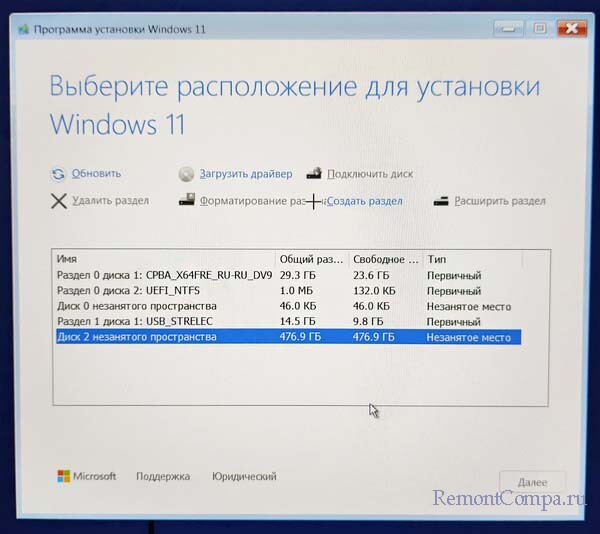 Теперь в окне программы установки Windows 11 виден накопитель SSD NVMe. Выделяем его и жмём Далее и устанавливаем операционную систему.