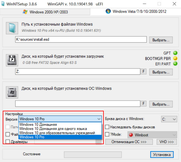 Как установить Windows 7, 8.1, 10 с помощью утилиты WinNTSetup
