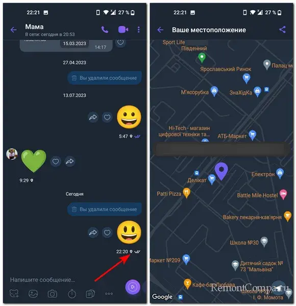 Далее каждое сообщение этого человека в нашем с ним чате будет содержать маленькую неприметную кнопку геометки. Кликнув по ней, увидим карту с отображением геолокации, откуда человек написал нам сообщение.