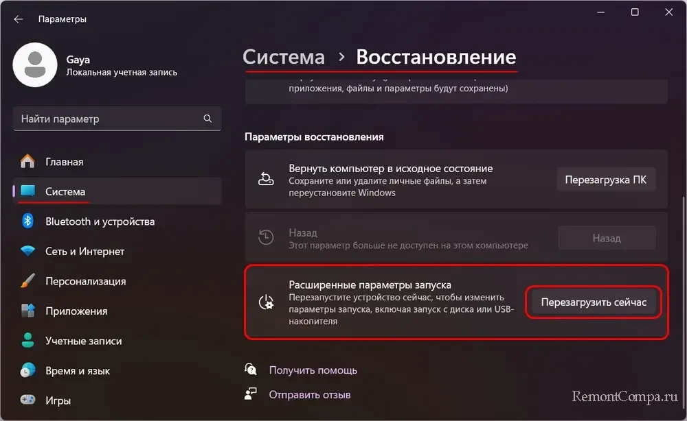 Для входа в безопасный режим Windows 11 в системном приложении «Параметры» идём по пути:
