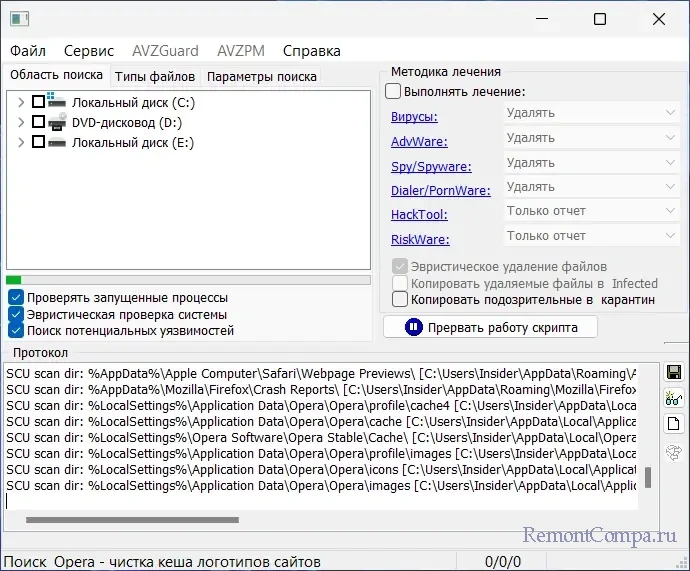 Утилита начнёт сканирование системных областей и приступит к выполнению своих задач.