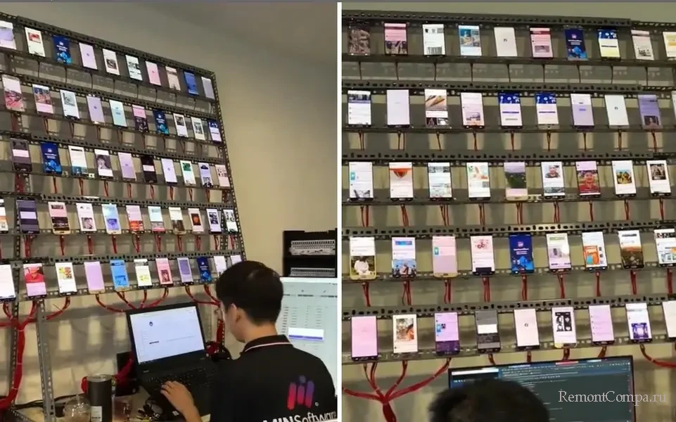 В контексте физического устройства ботоферма — это установка, состоящая из множества (сотни, а то и тысячи) подключённых к единой сети смартфонов. Часто оптимизированных в плане энергопотребления - со снятыми экранами для экономии энергии и без батарей, питаемые централизовано внешним источником.