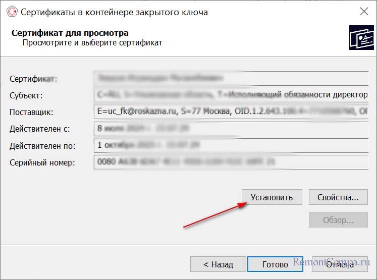 ↑ Установка квалифицированного сертификата в хранилище «Личные»