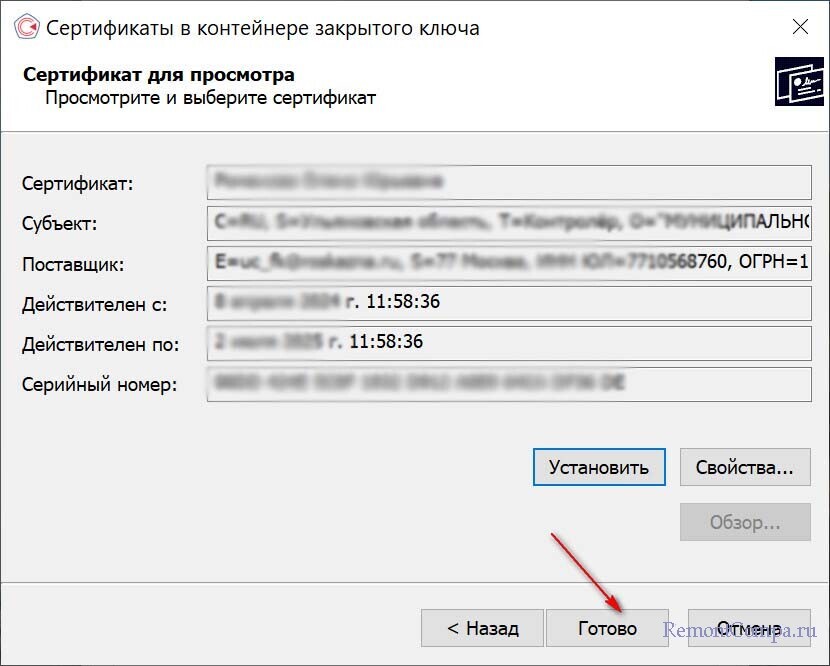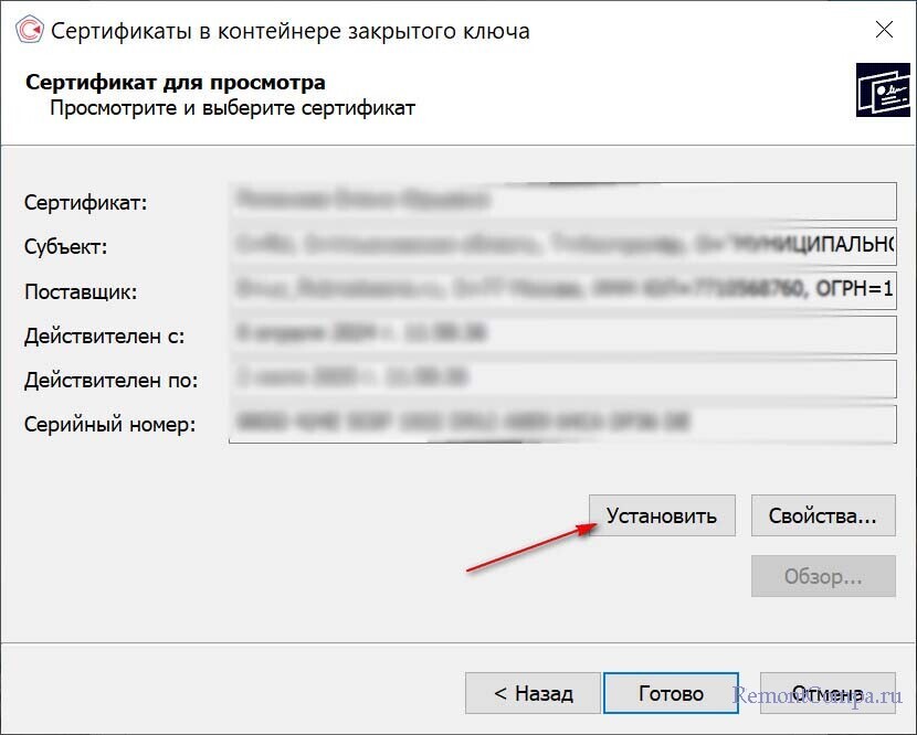 ↑ Как установить квалифицированный сертификат электронной подписи в хранилище "Личное", если у вас нет файла сертификата .cer