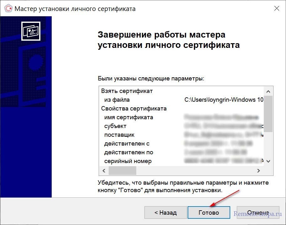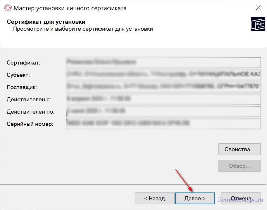 ↑ Как установить квалифицированный сертификат электронной подписи в хранилище "Личное", если у вас есть файл сертификата .cer