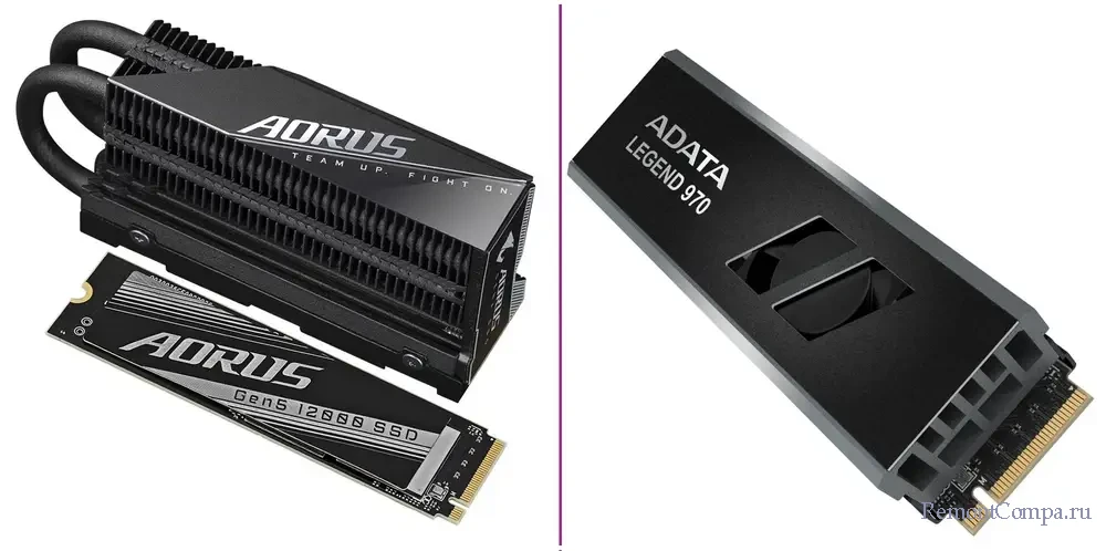 Потому многие SSD PCI-E 5.0 поставляются в комплекте с радиатором. Причём это могут массивные радиаторы - с активным охлаждением, т.е. со встроенным внутрь вентилятором, либо состоящие из тепловых трубок и рёбер.