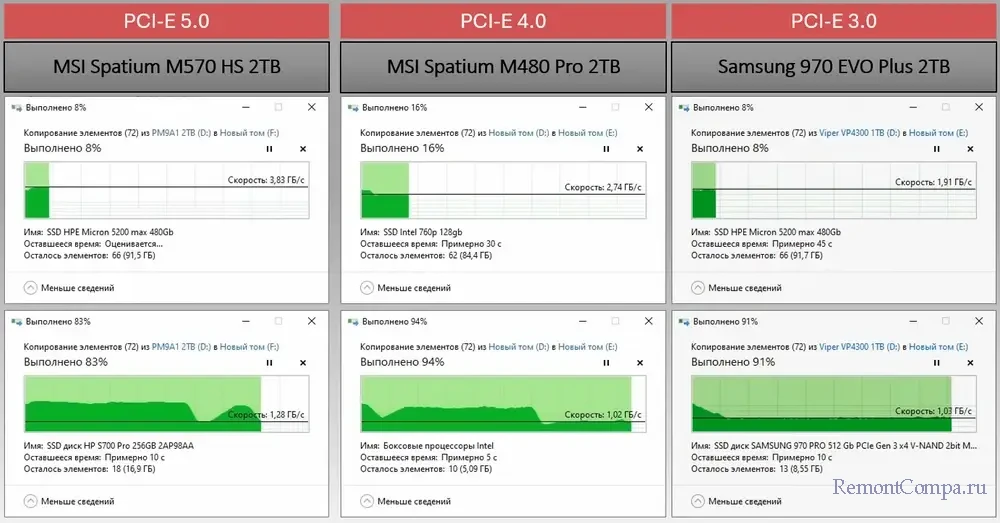 ↑ Скорости SSD-накопителей с PCI-E 5.0