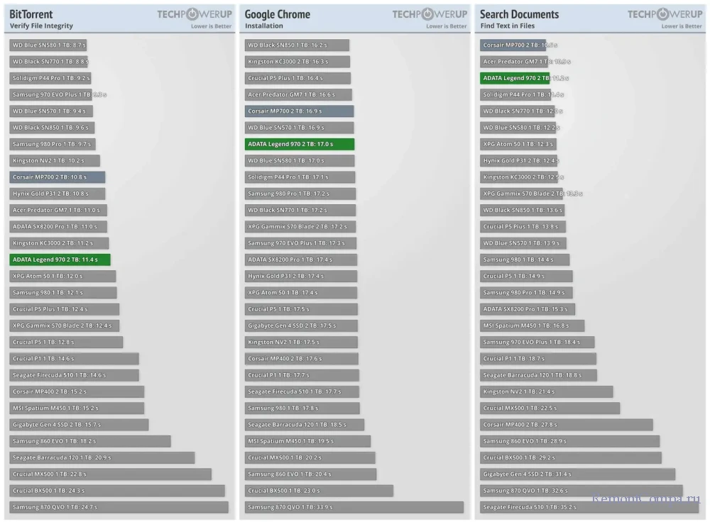 SSD PCI-E 5.0 в числе лучших, но не лидер в операциях проверки ISO-файла размером 6,3 Гб в программе µTorrent, установки Google Chrome и текстового поиска по ключевым словам.