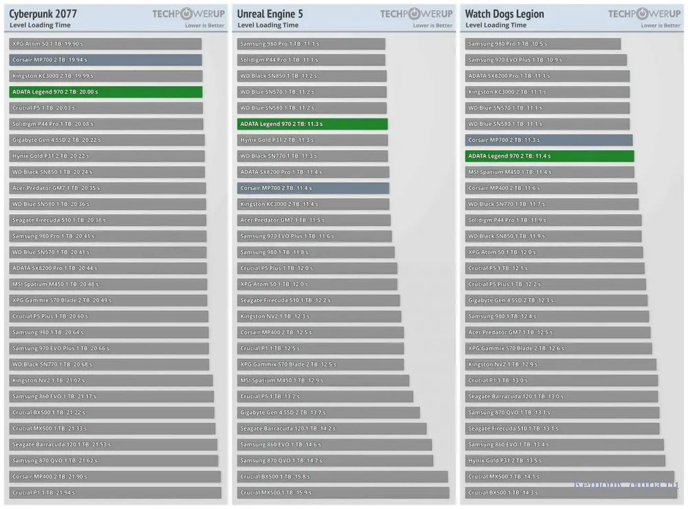 И SSD PCI-E 5.0 в числе лучших, но не первый в операциях загрузки уровней в отдельно взятых играх.