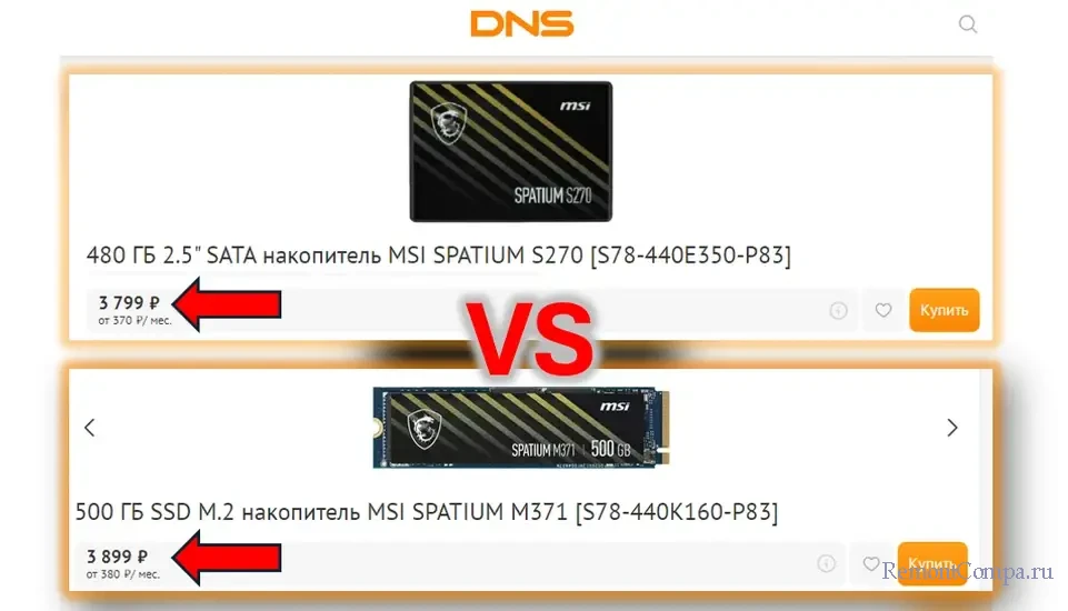Фундаментальна ошибка при выборе внутреннего SSD - SSD SATA, а не SSD NVMe, при условии, что в компьютер можно установить SSD NVMe. Совершить эту ошибку можно, ища недорогой накопитель и сочтя SSD NVMe дорогостоящими устройствами. Конечно, SSD NVMe с интерфейсом PCI-E 4.0 стоят недёшево, а цены на самые современные с интерфейсом PCI-E 5.0 на данный момент и вовсе заоблачные. Но, друзья, SSD NVMe с интерфейсом PCI-E 3.0 вполне доступны, на многие из них цены практически такие же, как на накопители SSD SATA.