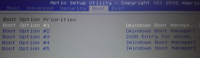 Заходим в UEFI БИОС и выставляем загрузку с SSD. Выбираем Меню загрузки (F8).