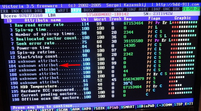Иногда бывает, что вместо названия атрибута Виктория выводит обозначение Unknown Attribute. В целом состояние винта удовлетворительное.