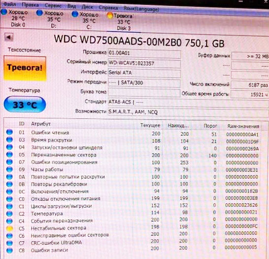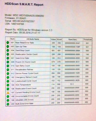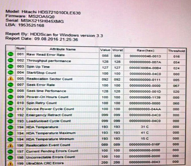 Как выглядит S.M.A.R.T неисправного жёсткого диска