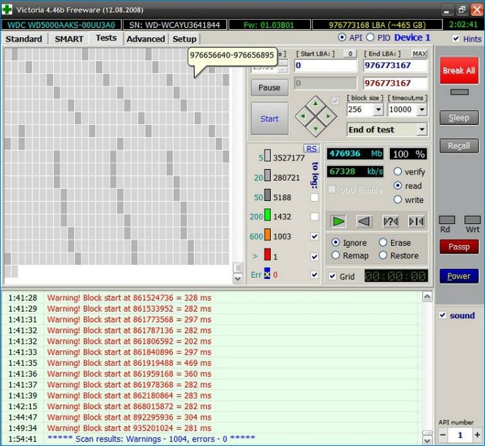 Забегая вперёд скажу, что тест этого винта в программе Victoria показал наличие 500 неисправимых сбойных секторов (бэд-блоков).