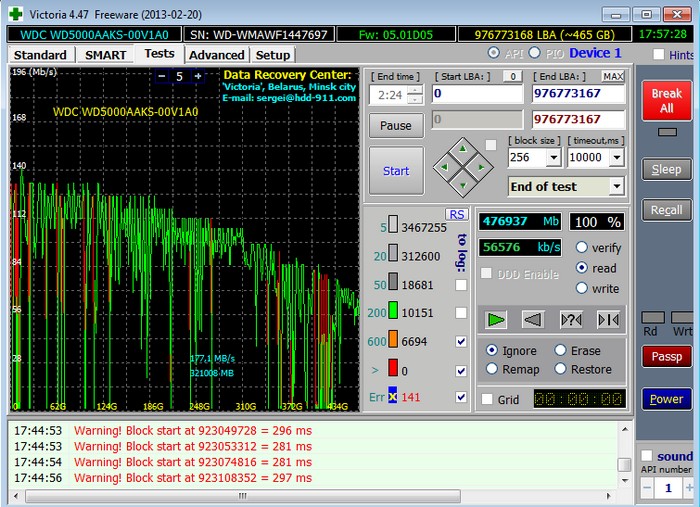 Забегая вперёд скажу, что тест этого винта в программе Victoria показал наличие 500 неисправимых сбойных секторов (бэд-блоков).