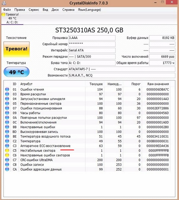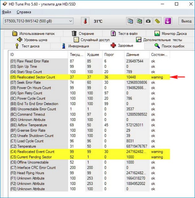 - Секторов с неудовлетворительной задержкой чтения более 600 ms (кандидаты в бэд-блоки) нет совсем, но...