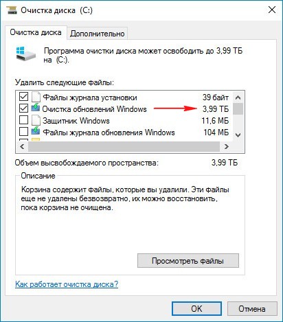 При выборе «Очистка обновлений Windows» получил следующее: Очистка обновлений Windows 3,99 ТБ. Что бы это значило?