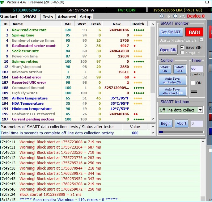 Как помочь этому жёсткому диску, вроде бэдов нет ..а смарт - БЭД ..?