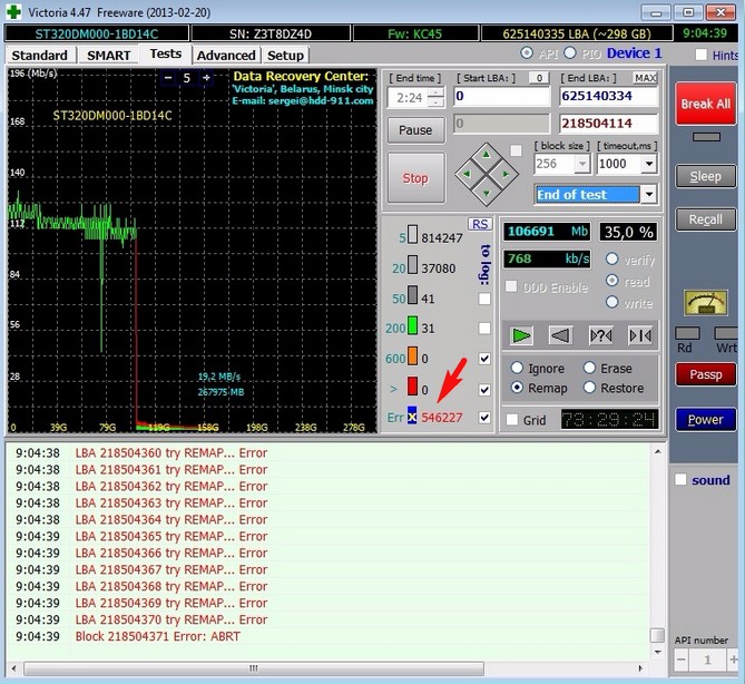 Спасибо попробую, а как скриншот делать, есть ссылка на инструкцию?Процесс пошол вроде. На рубеже 200 000 000 пошли одни error. При сканировании стоит галочка remap.