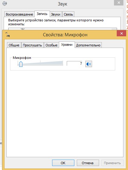 Если проблемы с записью своего голоса, то настраивайте уровень чувствительности микрофона