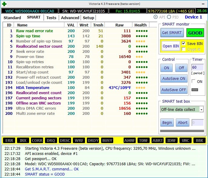 У меня ОС стоит на другом hdd и тест я делал с другого hdd. Вот таблица SMART: