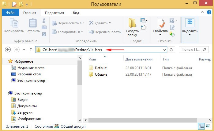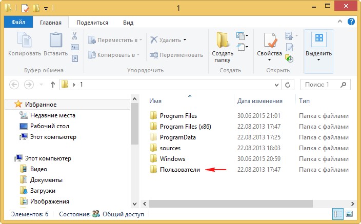 в папке "1" создаётся уже папка "Пользователи", так как Windows 8.1 рускоязычная .