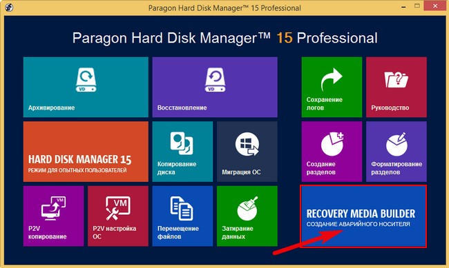 Загрузочную флешку создавайте в самой программе Paragon Hard Disk Manager™ 15 Professional.