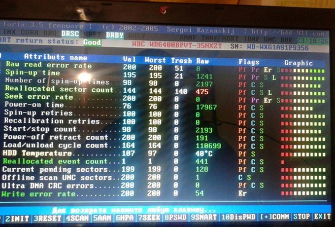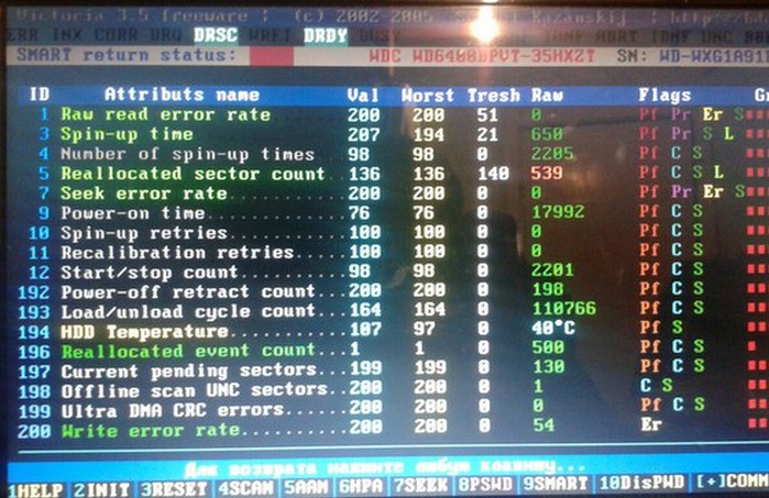 После запуска Виктории статус был еще Good, но после пары прогонов Erase 256 и Adv. Remap стало уже показывать статус Bad.