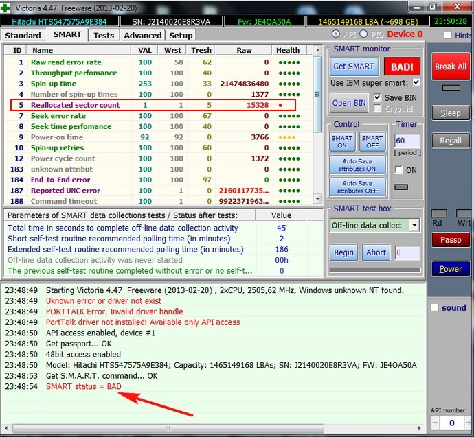 Здравствуйте. При загрузке виктории через виндовс она находит жесткий диск, а через флешку нет. И выдаёт ошибку "Отсутствует DRSC+DRDY или винт не снимает Busy...работа невозможна" Вот скрин