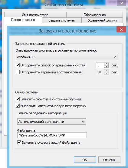 В окне Свойства системы->Дополнительно->Загрузка и восстановление, всё так?