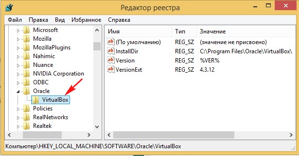 HKEY_LOCAL_MACHINE\SOFTWARE\Oracle\VirtualBox