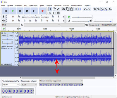 Увеличьте изображение звуковой дорожки на монтажном столе.