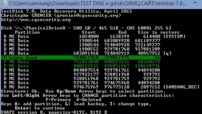 Здравствуйте. Вот выкладываю скрин. Снимок сделан из Win8.1 выделенные разделы это разделы с Linux Mint, но если загрузится с Live-CD Minta TESTDISK показывает тоже самое. На одном жестком диске у меня стояли Win и Linux при попытке установит третью систему Android-x86 (на снимке раздел Q) он нормально не установился и я его взял и удалил из Win программой Aomi Patrition Assistant Pro (просто стер-потом переустановил), но Mint вообще перестал загружаться его не видит не GRUB (Android он видит), не fdisk, Gparted видит как неразмеченное пространство. Остальные разделы на снимке это разделы Win и разделы восстановления установленные производителем Samsung. Если дальше войти в эти разделы Linux то TESTDISK видит их нормально. Извините за долгое описание. Спасибо.