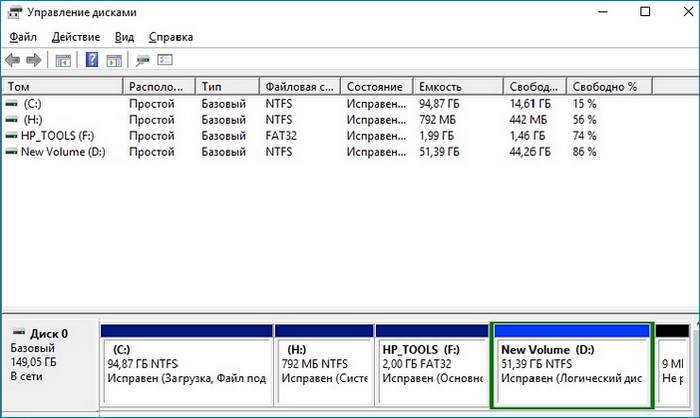 после обновления в управлениями дисками имеется том 792мб, свободно 442мб (56%)