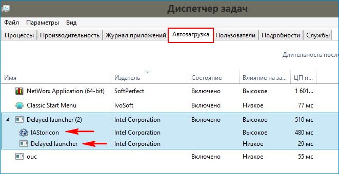 Вы меня не правильно поняли, или я так плохо объяснил. Я не утверждал, что вы писали что "надо ставить в автозагрузку", я писал что вы говорили, что надо ставить драйвер Рапид сторож технолоджи! А спрашивал я про то что, в автозагрузке они оба- Delayed Launcher, и IAStorDataSvc от Intel - отражаются в одном пункте вместе, вот и думал отключить или оставить..