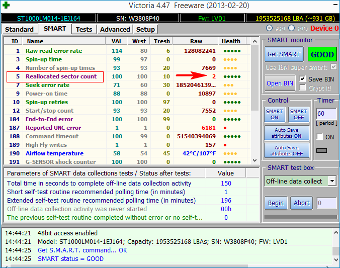но в независимости от результата, с данным диском нужно работать осторожно. Следите за атрибутом №5, если он будет изменятся, то посоветуйтесь со мной.