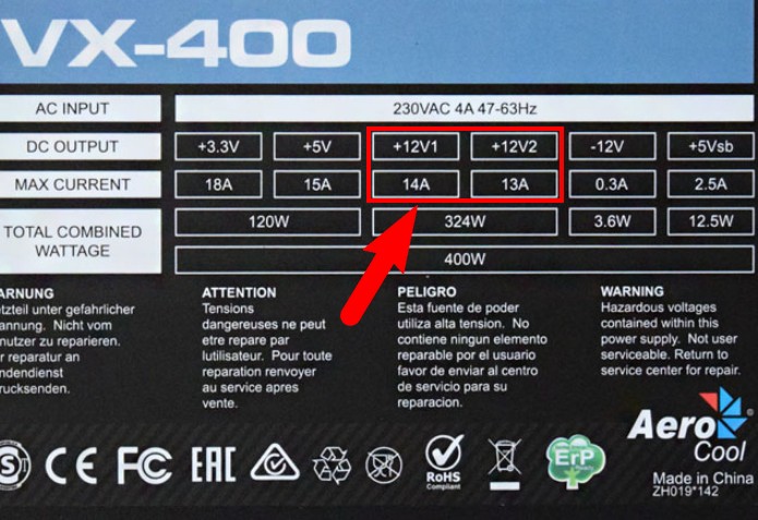 Нагрузка в игровом компьютере идёт в основном на линию 12 вольт. При покупке блока смотрите на наклейке информацию. Для игрового компа выбирайте не ниже 20 ампер (на линию 12 вольт), этого хватит вполне. На дорогих блоках питания идёт 25 ампер на линию 12 вольт.