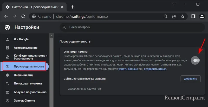 Как отключить экономию памяти в браузере Google Chrome