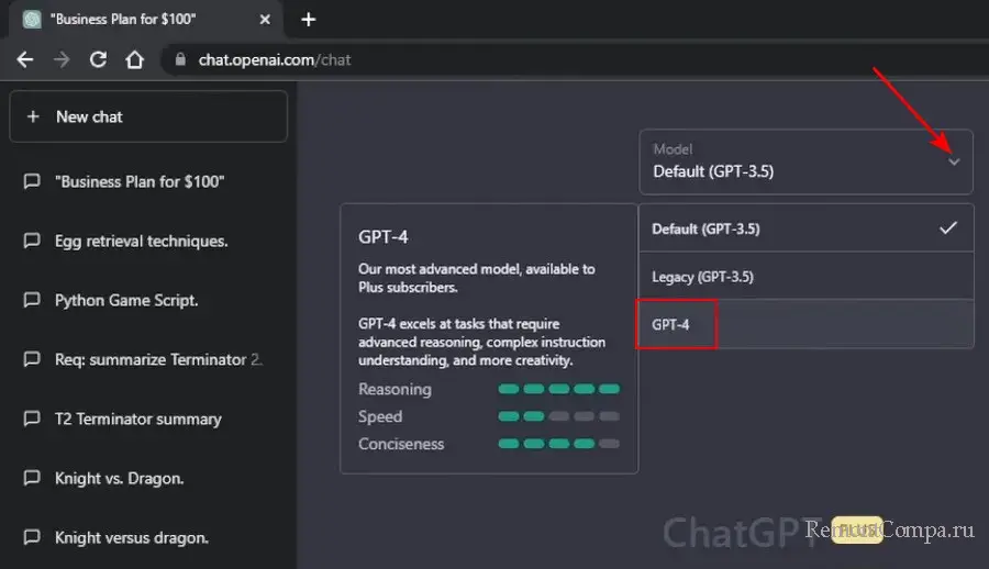 ChatGPT бесплатен, но у него есть платная версия ChatGPT Plus по подписке, стоит $20 в месяц. Платный чат-бот работает быстрее и предлагает приоритетный доступ к новым функциям по мере своего совершенствования. В данный момент ChatGPT Plus предусматривает доступ к новой версии нейросети GPT-4 – более интеллектуальной, дающей более полные ответы на вопросы, более креативной, более творческой. В ChatGPT Plus можем выбирать модель чат-бота - GPT-3.5 или GPT-4.